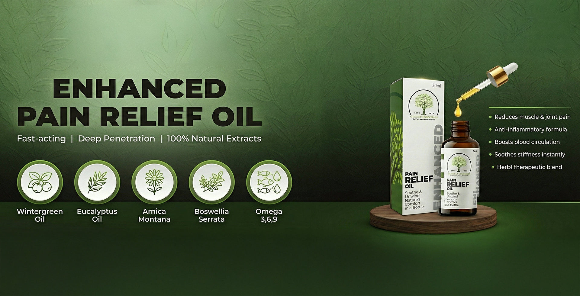 Experience powerful, deep-penetrating relief with our Ultra-Strength Pain Relief Oil a trusted formula certified by leading authorities and crafted from premium herbal extracts.Specially designed to reduce inflammation, relax stiff muscles, and relieve joint or body pain within minutes, this fast-absorbing oil works naturally without side effects.Perfect for back pain, knee pain, shoulder stiffness, sports injuries, and everyday muscle fatigue giving you smooth mobility and long-lasting comfort.